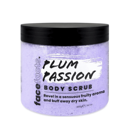 Face Facts Lemon Swirl Body Scrub (400g) is a vegan-friendly exfoliator that uses natural particles to remove dead skin cells, polishing the skin for a smoother, softer, and more radiant appearance. It cleanses and nourishes skin using a citrus-infused formula that helps improve tone and texture