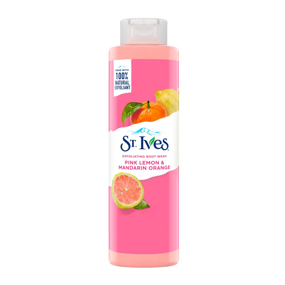 St. Ives Pink Lemon & Mandarin Orange Exfoliating Body Wash works by polishing, refreshing, and cleansing skin using 100% natural walnut shell powder and citrus extracts. It removes dead skin cells to reveal smoother, brighter, and more radiant skin while providing a refreshing scent suitable for daily use